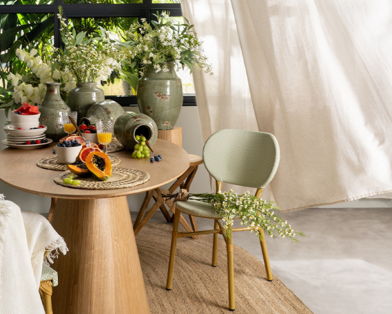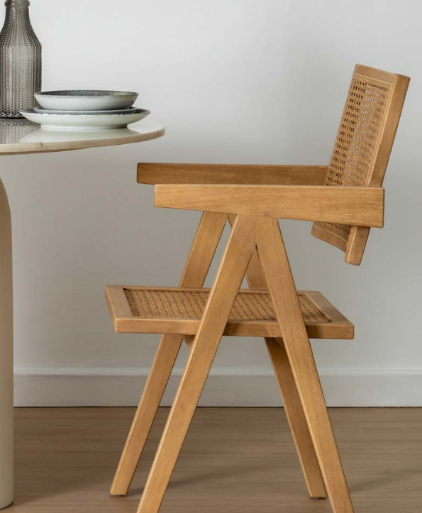 Sillas de madera aportan calidez, autenticidad y una conexión con lo natural. Pueden combinarse con tejidos en asiento o respaldos, o protagonizarse con detalles como el cannage o cuerda.