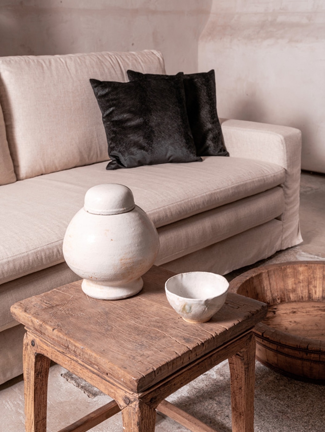 Los acabados envejecidos y las superficies desgastadas narran una historia visual que enriquece cualquier proyecto contract, aportando profundidad y carácter.