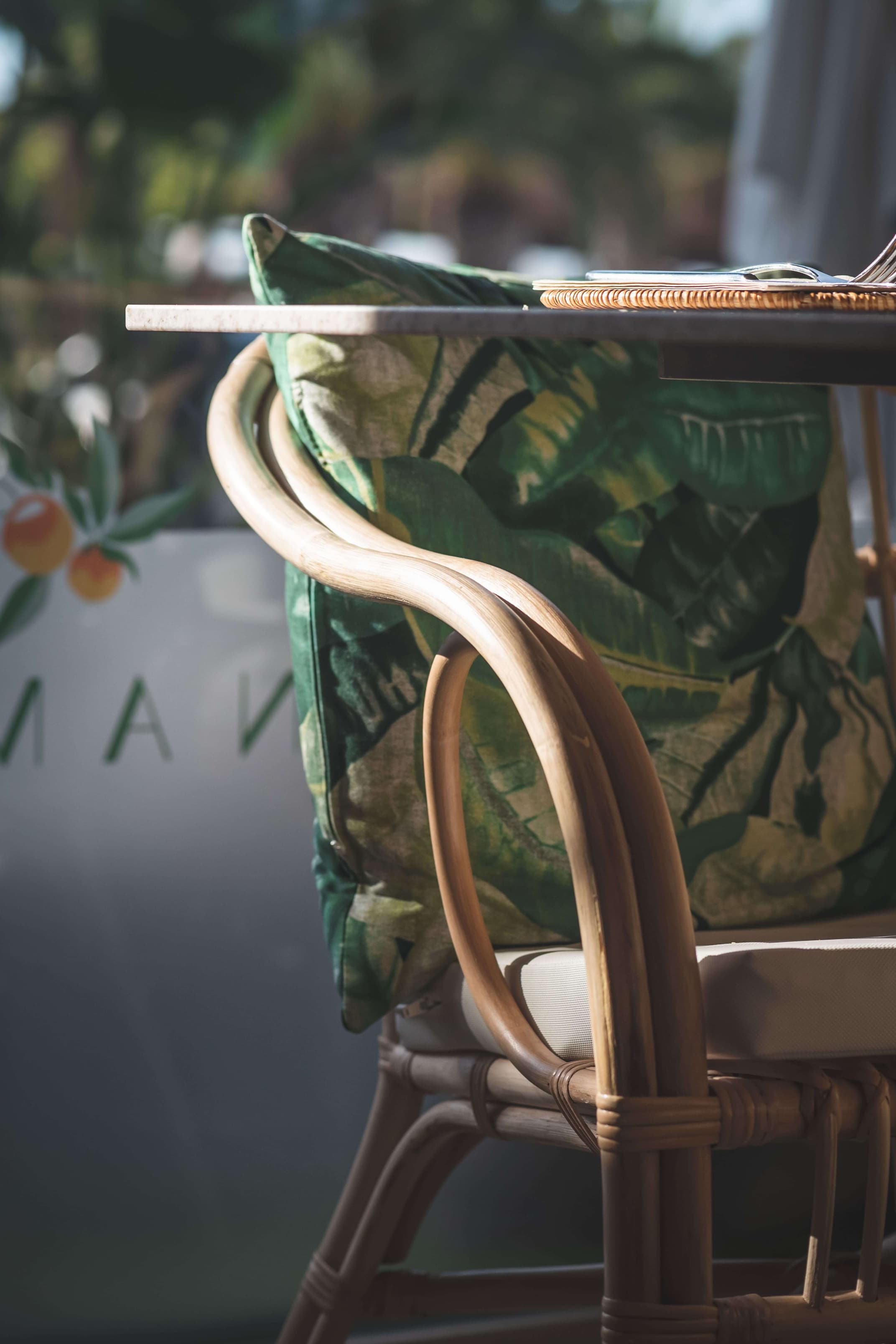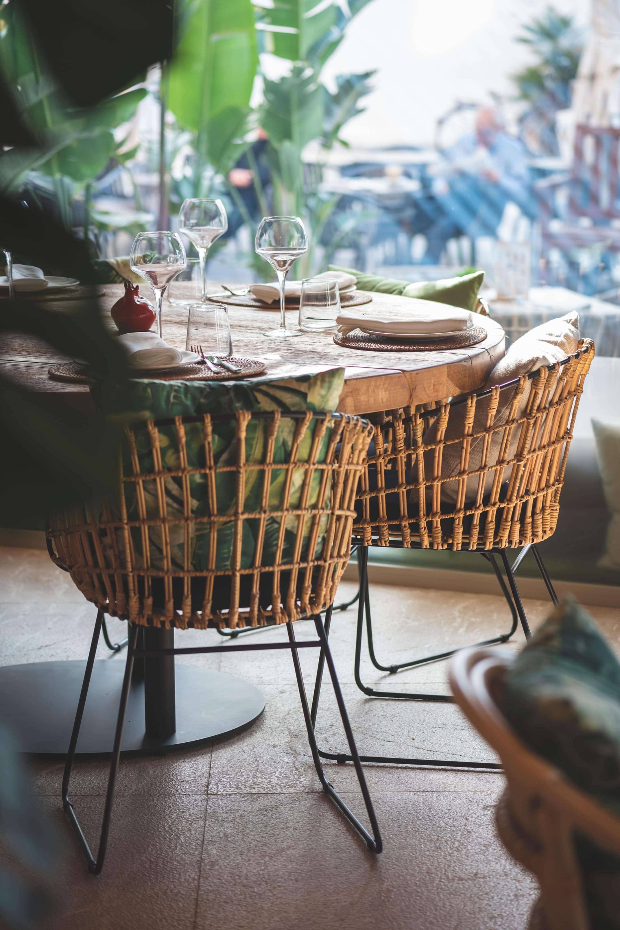 También cuenta con sillas de ratán únicamente. Una elección estilística y funcional para un restaurante. Aportan un toque natural y elegante, se adaptan tanto a espacios interiores como exteriores, y brindan comodidad a los comensales.