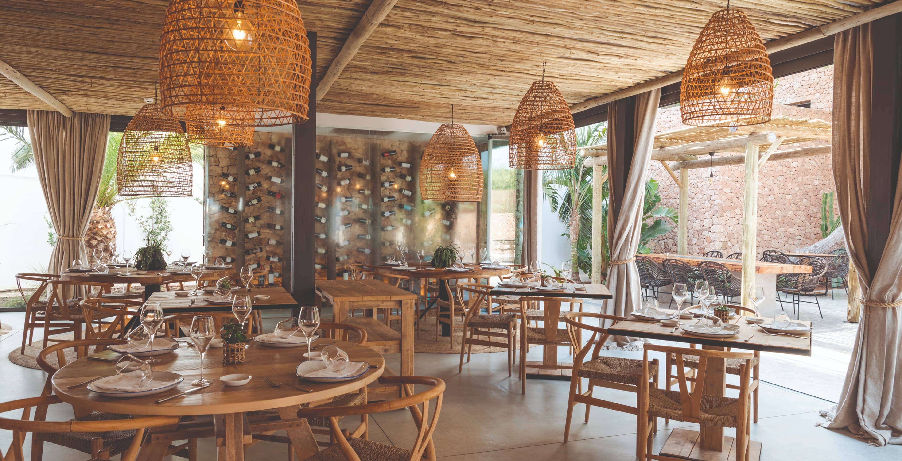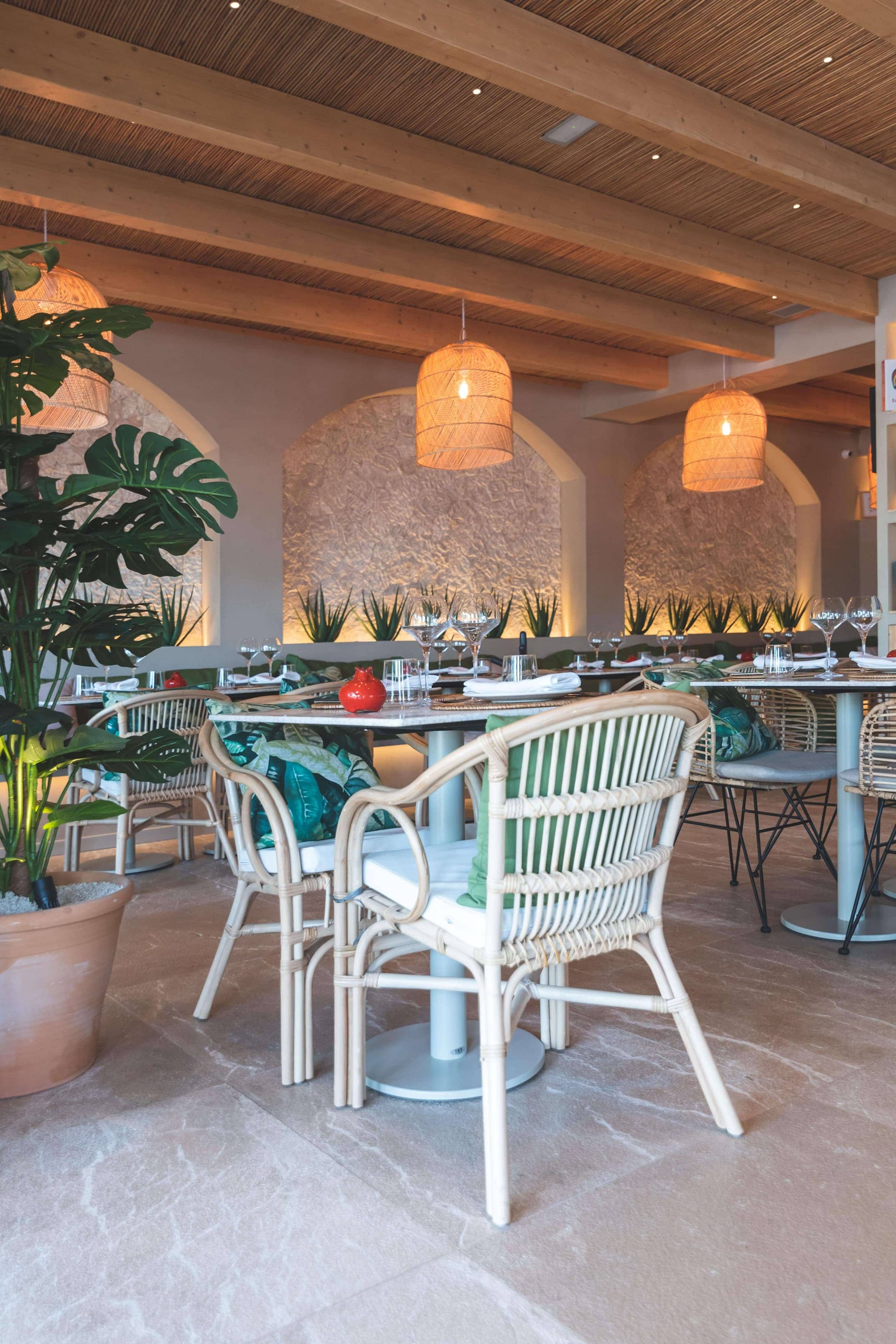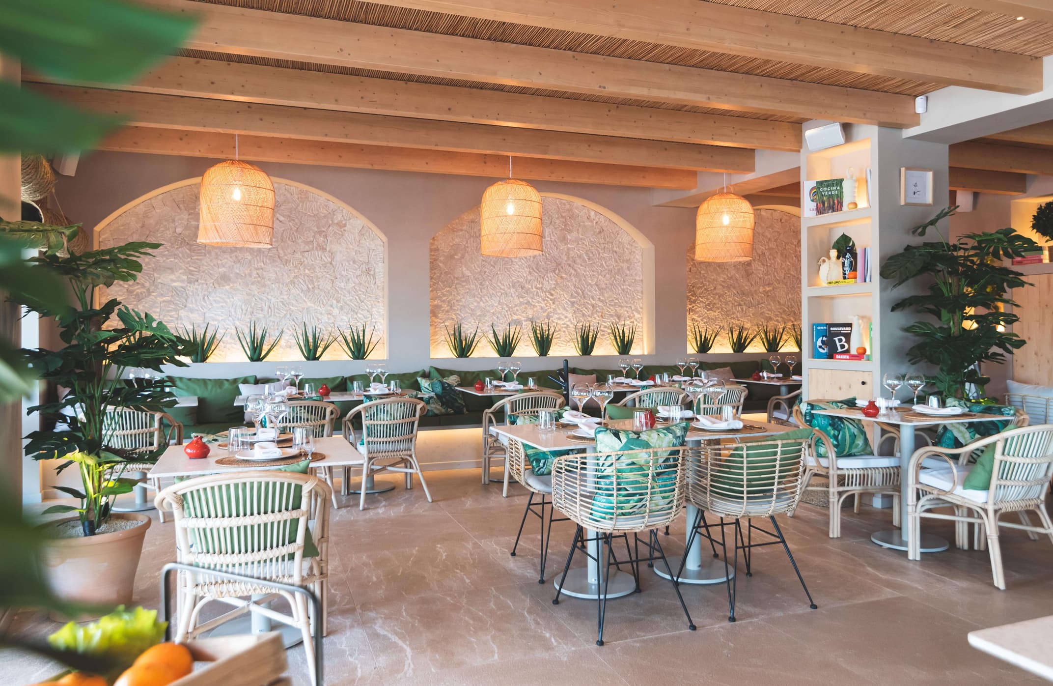 Pero Ca Na Marcè no se conforma solo con ser un lugar hermoso, también busca ofrecer una experiencia moderna y fresca. Los materiales, colores y texturas elegidos han sido cuidadosamente seleccionados para dotar al restaurante de una personalidad propia, buscando paz y frescura en cada rincón.