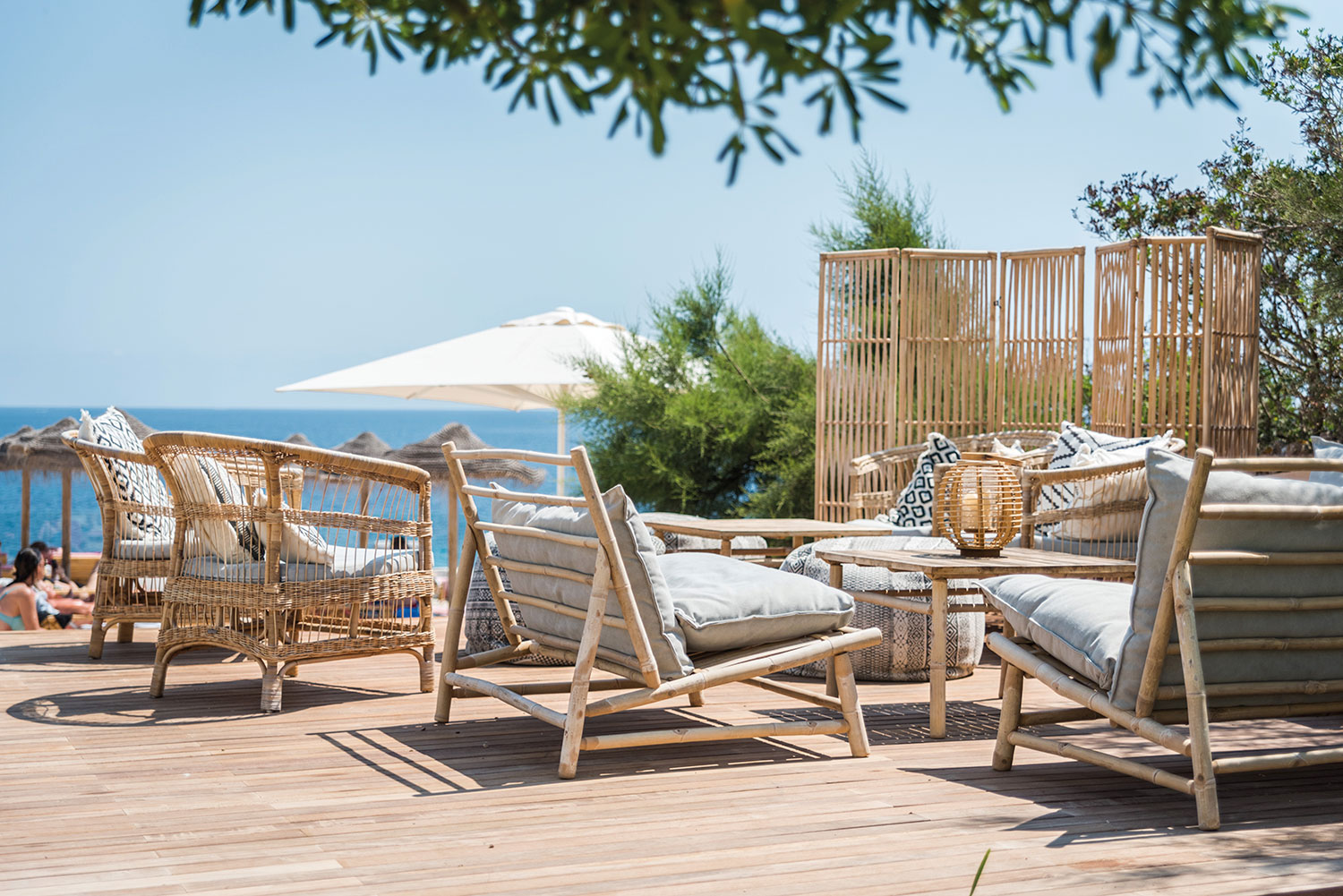La firma TineKHome es la encargada de vestir los impresionantes exteriores con sus butacas de bambú. Muebles duraderos y de diseño simple, integrados en el estilo relajante de las terrazas. Tranquilidad y paz inundan estos espacios gracias al uso de tonos neutros también presentes en los detalles textiles.