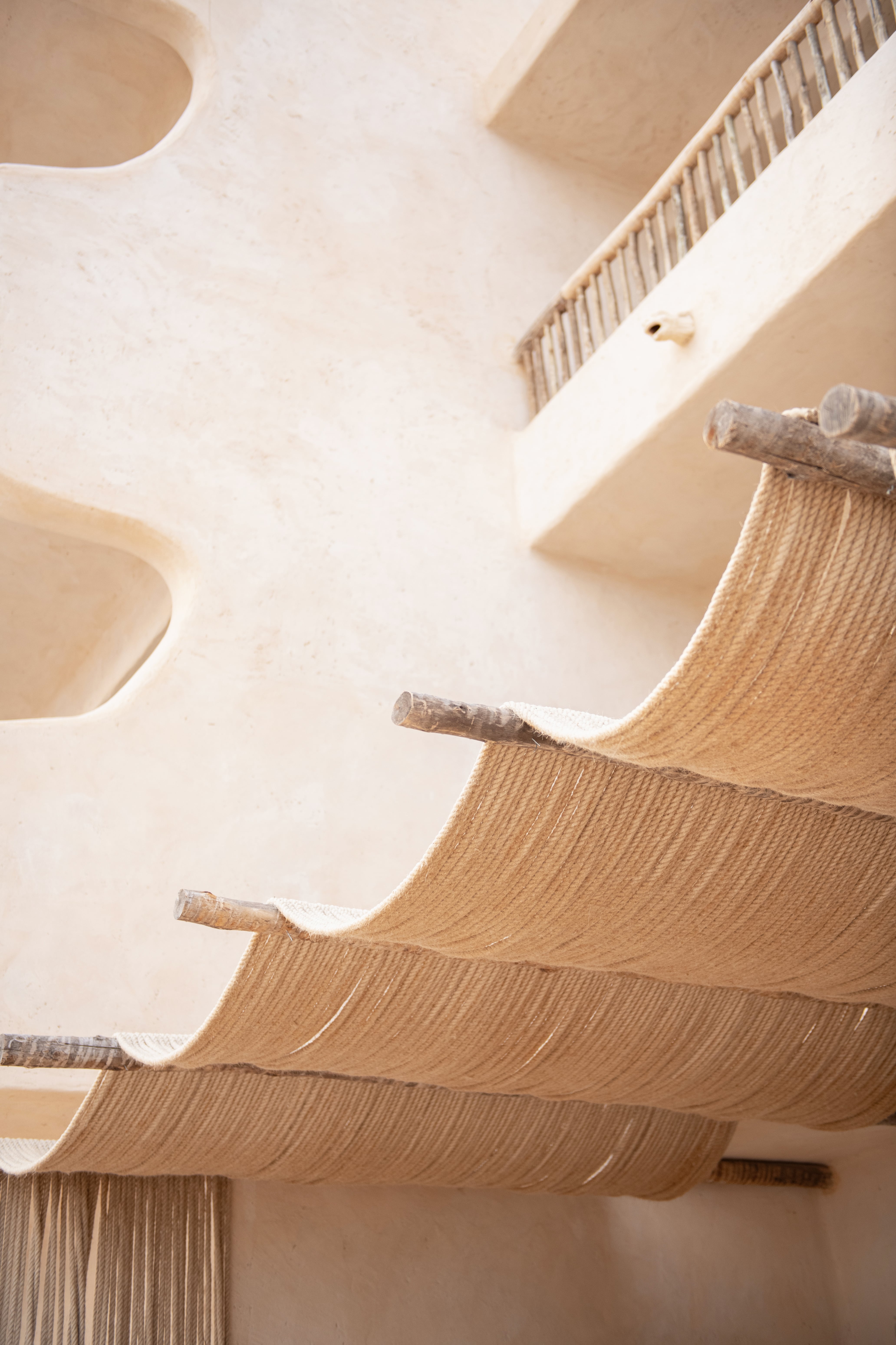 Los muebles para las habitaciones, como las sillas de teca reciclada y cuerda de Dareels, crean una atmósfera armónica con el resto de elementos decorativos de la estancia. La artesanía tradicional y las fibras naturales están muy presentes en todo el complejo, consiguiendo texturas relajantes y ambientes naturales.