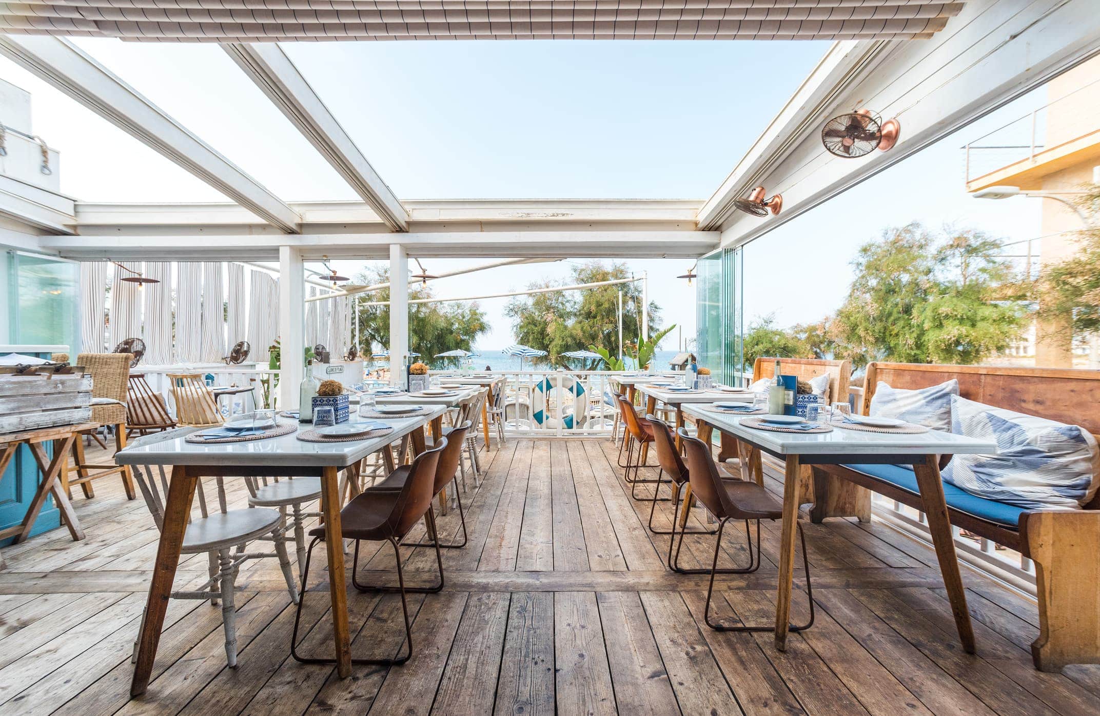 Cassai Beach es mucho más que un beach club clásico, es una tasca marinera frente al mar. Cuenta con encanto propio tanto por su ubicación, como por su cuidada estética. Tiene una amplia terraza con vistas al mar y un salón interior cargado de detalles, que recrea fielmente, una antigua tasca marinera.