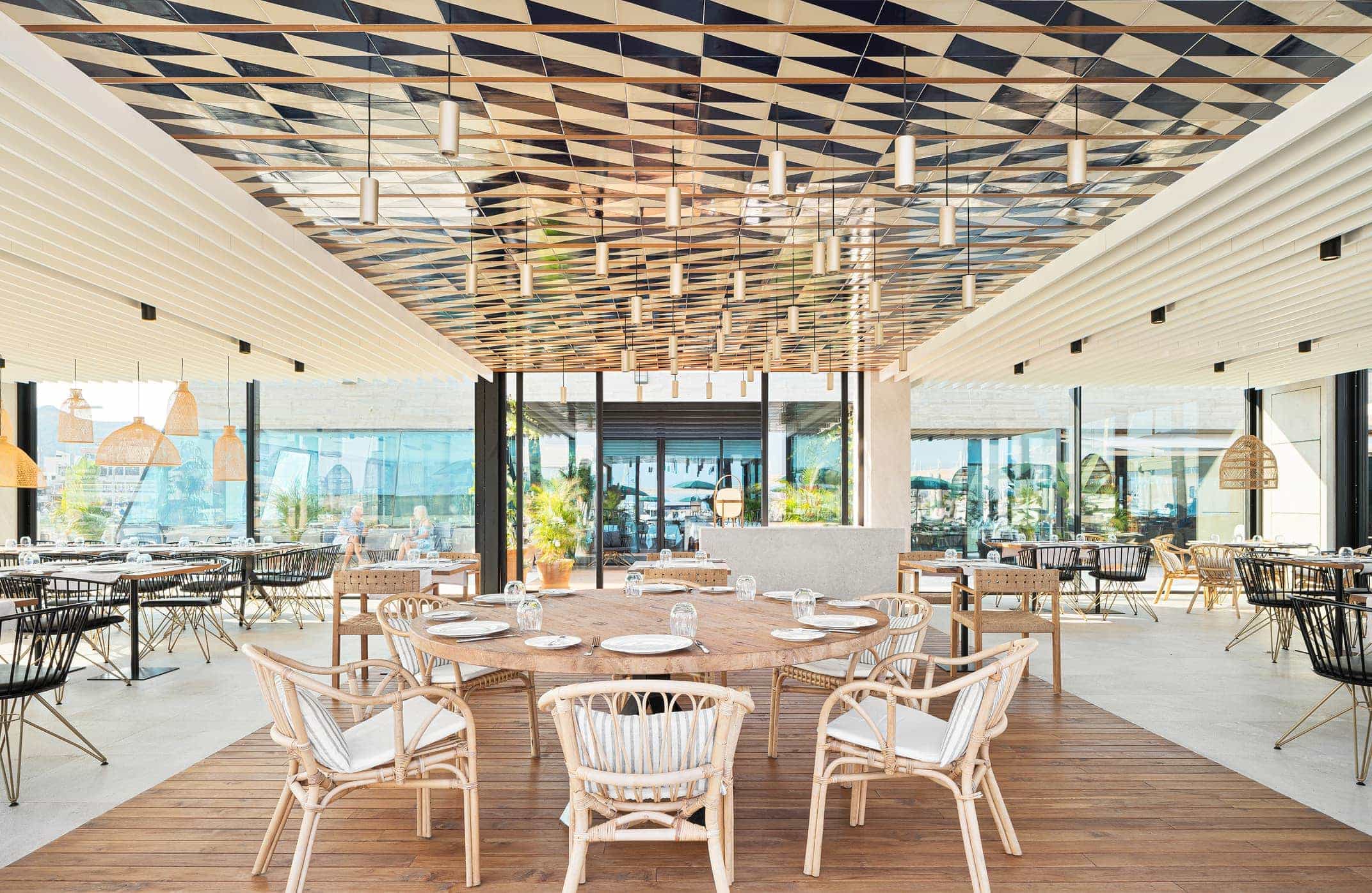 El reconocido estudio de interiorismo Felip Polar ha diseñado un restaurante de estilo moderno-contemporáneo con pinceladas mediterráneas que hacen un guiño a su ubicación. La combinación de la madera con detalles en tonos oscuros crea un contraste encantador que llena el espacio de calidez.