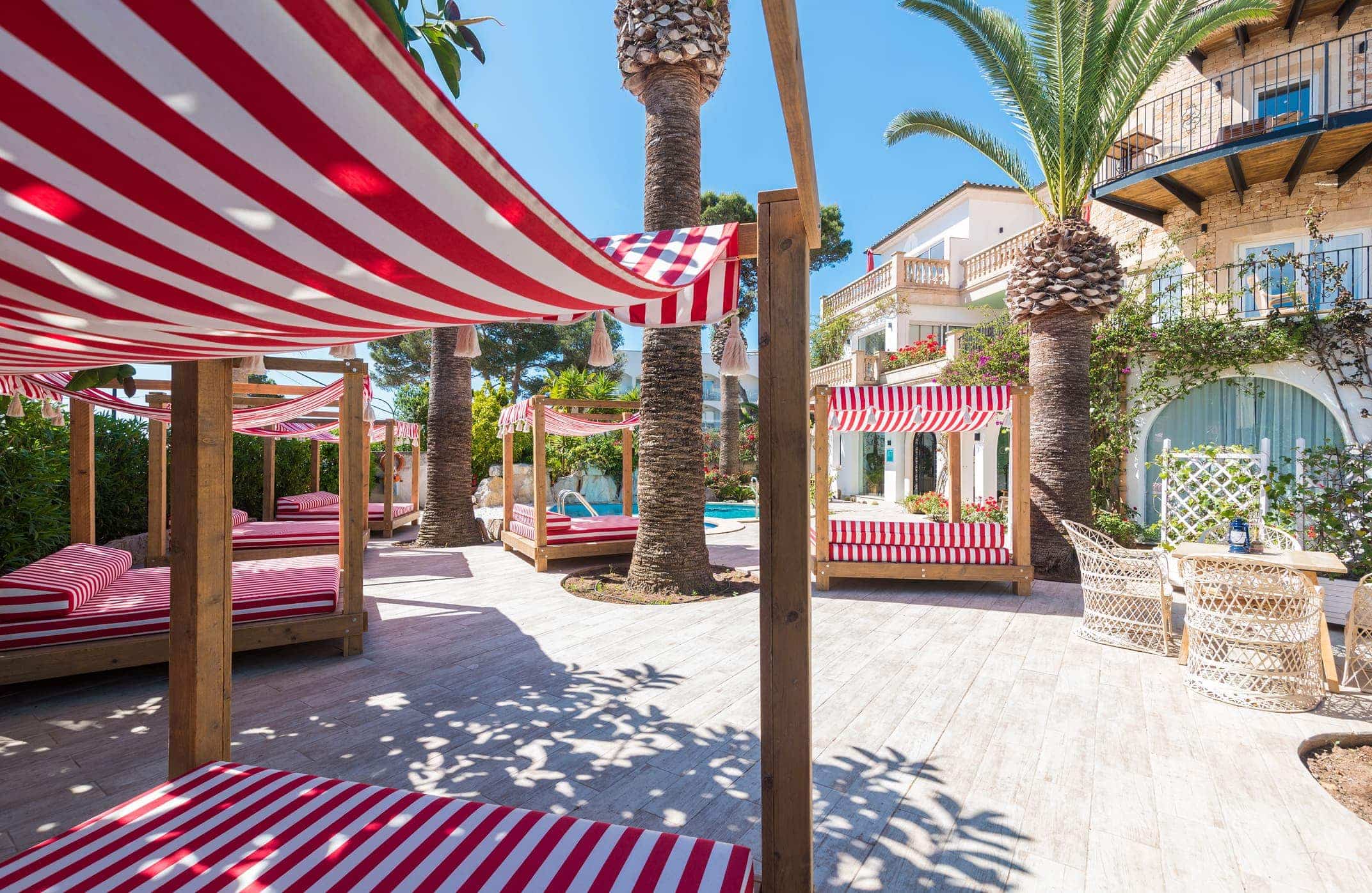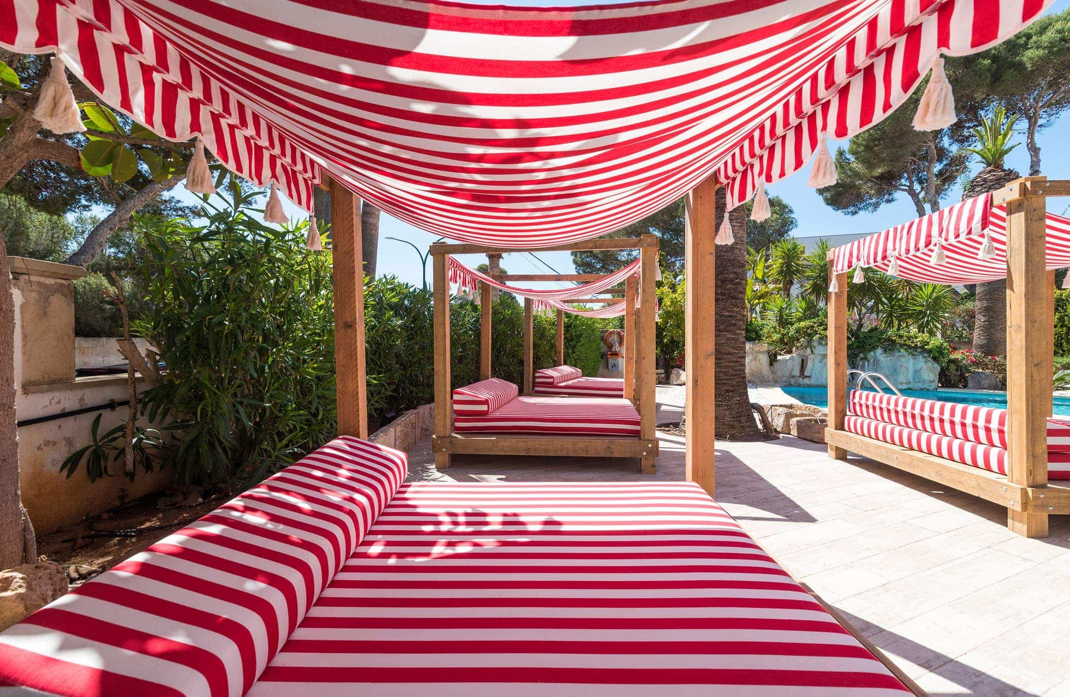 En las zonas outdoor de VillaPiccola se respira calma. Espacios muy completos gracias al mobiliario de exterior donde poder pasar horas y horas de despreocupación y tranquilidad. Los protagonistas de estos espacios son la piedra y la madera, que aporta un toque rústico mediterráneo, y los tonos rojos y blancos tan distintivos de las camas balinesas de la firma VivaMadera, que añaden frescura. La posibilidad de personalizar acabados en los muebles de VivaMadera imprime a los espacios su carácter únicos, diferencial y con personalidad propia.