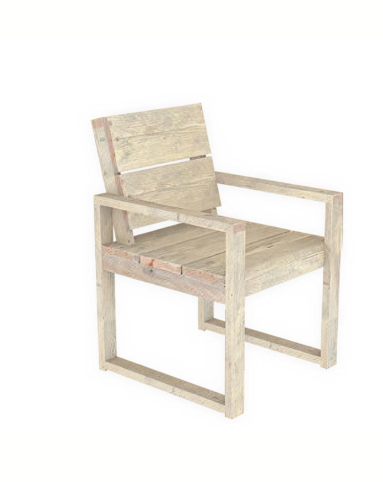 Las sillas de Vivamadera están hechas con madera reciclada y diseñada para ofrecer máxima comodidad. Perfectas para interiores y exteriores, sus acabados naturales y detalles artesanales aportan un toque rústico y elegante, ideal para cualquier entorno, desde casas hasta negocios contract.